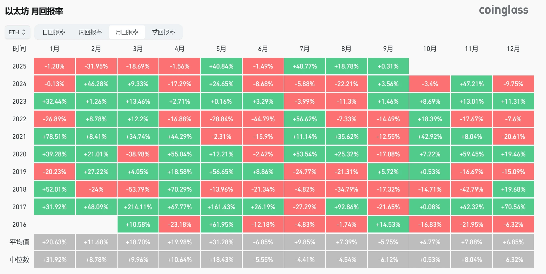 比特币与以太坊9月历史表现不佳,Coinglass数据显示平均收益率为负 2025-09-01 14:53:13 DeFi快讯 25℃ Coinglass数据显示,比特币与以太坊历史9月平均收益率分别为-3.55%和-5.75%。以太坊过去9年同期仅4次录得正收益(2016、2019、2023、2024),比特币过去12年9月正收益次数亦为4次(2015、2016、2023、2024)。 上一篇:Swell Network:以太坊流动性质押协议 下一篇:Goobit Group增持BTC至11.65枚 相关推荐 分析师:比特币7月历史表现强劲,过去十年七次录得正收益 2025-07-14 7月14日,独立分析师 Markus Thielen 发布报告显示,比特币在过去十年间七次录得正收益,月均涨幅9.1%。该分析师于7月初即预测比特币可能依托季节性效应触及117,244美元高点。当前价格上行由多重宏观因素驱动,涵盖美股市场回暖提振风险偏好、美国前总统特朗普施压美联储政策转向,以及&r 监测数据显示美国比特币及以太坊ETF单日资金流入情况 2025-07-14 7月14日,链上数据分析平台Lookonchain监测数据显示,当日美国市场10只比特币ETF累计净流入8958枚BTC,9只以太坊ETF净流入量达68957枚ETH。 比特币8月和9月历史表现疲软,下跌概率达67% 2025-08-02 链上分析平台Lookonchain(@lookonchain)发布的数据显示,比特币在8月和9月的历史表现显著疲软。统计显示过去12年中,该资产在这两个月份的下跌概率达67%,其中8个年份录得负收益。 以太坊年度收益率升至73%,与比特币差距持续缩小 2025-08-14 8月14日数据显示,以太坊年度收益率升至73%,呈现加速增长趋势,与比特币同期104%的收益率差距持续收窄。 8月15日比特币与以太坊期权到期量及关键数据公布 2025-08-15 8月15日,Greeks.live数据显示,当日比特币期权到期量达3.9万张,以太坊期权到期量为28万张。比特币期权Put Call Ratio为0.95,最大痛点价格118,000美元,名义价值46亿美元;以太坊期权Put Call Ratio为1.04,最大痛点价格4,000美元,名义价值13亿 比特币与以太坊9月历史表现不佳,Coinglass数据显示平均收益率为负 2025-09-01 Coinglass数据显示,比特币与以太坊历史9月平均收益率分别为-3.55%和-5.75%。以太坊过去9年同期仅4次录得正收益(2016、2019、2023、2024),比特币过去12年9月正收益次数亦为4次(2015、2016、2023、2024)。 以太坊8月现货交易量首超比特币,CEX平台数据显示 2025-09-04 8月,中心化交易平台(CEX)以太坊现货交易量至少七年来首次超过比特币(BTC),结束比特币长期主导全球现货交易量的局面。CEX平台以太坊8月现货交易总额接近4,800亿美元,比特币约为4,010亿美元。 9月10日美国比特币及以太坊ETF净流入数据公布 2025-09-12 链上数据分析平台Lookonchain监测显示,9月10日美国比特币ETF累计净流入6,324枚BTC(约合7.2456亿美元),同期以太坊ETF净流入量达32,292枚ETH(约合1.4305亿美元),数据截至发稿时已确认。