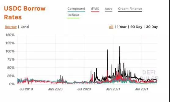 以USDC为例,其在DeFi平台上的借贷利率曾多次出现剧烈波动。历史数据显示,在市场极端行情下,USDC的借贷利率可在数日内从接近零跃升至两位数百分比。这种波动不仅影响了用户的资金成本,也暴露了现有利率模型在风险管理方面的不足。尤其对于寻求长期融资安排的实体而言,此类波动性极大削弱了DeFi作为可靠融资渠道的吸引力。因此,构建具备利率锁定功能的固定利率或衍生品机制,已成为推动DeFi迈向机构级应用的关键基础设施。